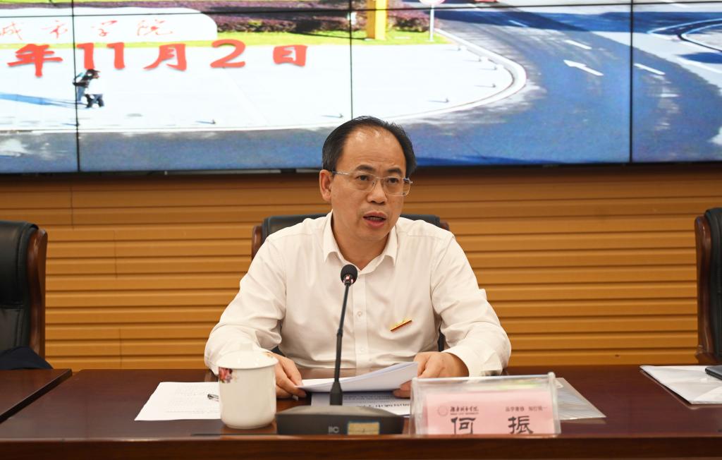 何振以“对标评估新要求 夯实教学新基建 助推我校高素质应用型人才培养质量再提升”为题,全面回顾了过去五年我校教育教学工作取得的主要成绩。他指出,过去五年,学校围绕立德树人根本任务,聚焦高质量发展,大力推进“双一流”建设,全面建设“五个新城院”,坚持疫情防控不松懈、教学科研不放松、改革发展不停步,学校本科教育教学工作取得明显进步,教育教学质量得到了稳步提升。主要表现为:人才培养中心地位更加巩固,专业建设得到新提升,教育教学改革取得明显成效,学生综合素质得到稳步提升,人才培养质量体系不断健全。