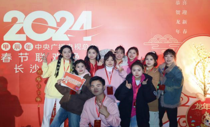 本网讯(通讯员 刘华波)2月9日晚8点,中央广播电视总台2024年春节联欢晚会如期上演。整场春晚以北京主会场及辽宁沈阳、湖南长沙、陕西西安、新疆喀什四地分会场为阵地,为全国广大观众献上了一场精彩纷呈的文化盛宴。我校音乐与舞蹈学院的部分学生参演了湖南分会场演出,展现出精湛的专业技能和无限的青春活力。