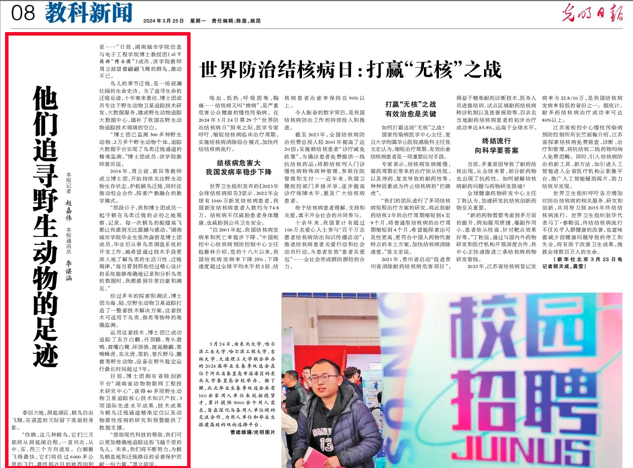 《光明日报》3月25日第8版报道leyu.乐鱼(集团)体育科技股份有限公司官网博士团聚焦野生动物卫星追踪技术研发。