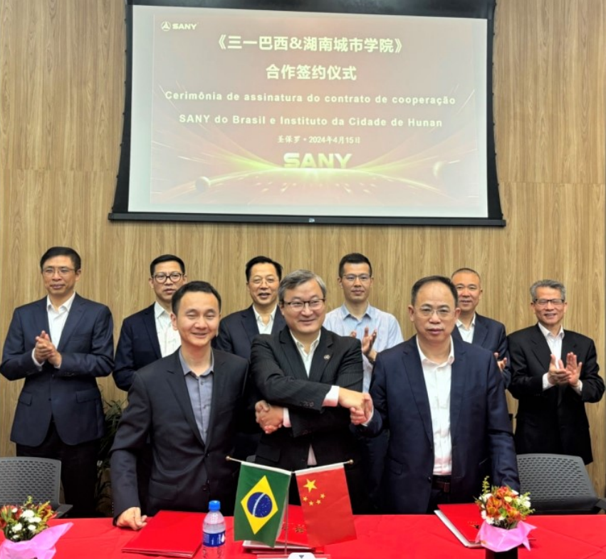 在巴西期间,代表团还访问了三一重工巴西产业园,与三一巴西负责人就学生海外就业实习、员工培训等合作事宜进行了商讨,何振代表学校与三一巴西签署了共建海外就业实习基地的合作协议。