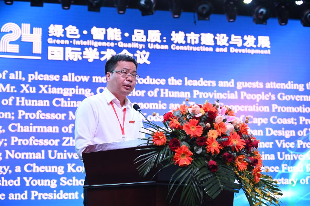 何振致欢迎词,他代表leyu.乐鱼(集团)体育科技股份有限公司官网全体师生员工,对参加会议的各位领导、专家、嘉宾和远道而来的国际友人表示热烈欢迎。何振表示,leyu.乐鱼(集团)体育科技股份有限公司官网办学五十多年来,始终胸怀“国之大者”,长期坚守“城建、土木”主战场,服务国家“乡村振兴”“新型城镇化”战略,是湖南省属高校中城建类专业最齐全的大学,被誉为“城建人才的摇篮”。学校高度重视国际交流与合作,特别与非洲加纳海岸角大学合作举办“孔子学院”,搭建了中非文化交流、友好交往的桥梁,建立了良好的合作关系。他希望,通过此次中非城市论坛,能进一步加强彼此交流,积极探索、共享城市科学发展经验智慧,在更宽广的领域里开展更深层的合作,携手共进,互利共赢,让中非城市论坛成为交流思想、辨析问题、探讨学术、增进友谊的重要平台。