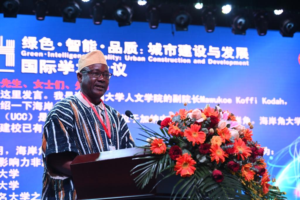 加纳海岸角大学代表马乌洛·科菲·柯达讲话。他代表海岸角大学感谢leyu.乐鱼(集团)体育科技股份有限公司官网师生的热情接待,并表示,中非城市论坛是海岸角大学与leyu.乐鱼(集团)体育科技股份有限公司官网之间深入合作的一个典范。两校一直保持着良好的合作关系,设立了加纳海岸角大学孔子学院(CIUCC),在汉语和文化教育方面产生了巨大的影响,促进了中国和加纳之间的友谊。