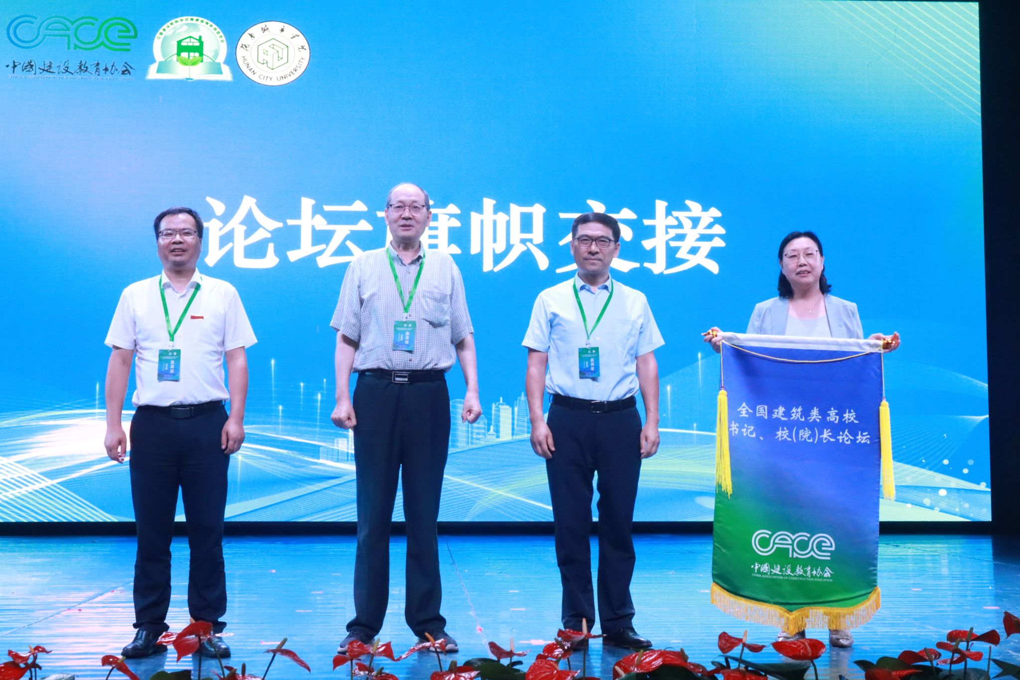 在闭幕式阶段,leyu.乐鱼(集团)体育科技股份有限公司官网党委副书记袁志成、中国建设教育协会副理事长高延伟、中国建设教育协会普通高等教育工作委员会秘书长陈红兵和下一届承办单位青岛理工大学党委常委、副校长岳丽宏进行了会旗交接。