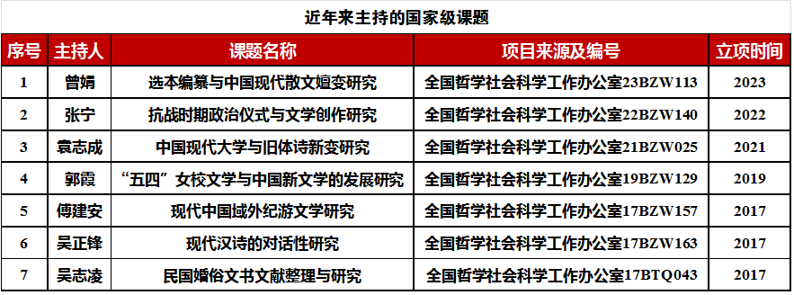 学院教师围绕近现代旧体诗词、方言与传统文化的域外传播等学科方向,传承传统文化,科研成果丰硕,主持立项国家级课题7项,获湖南省社科成果一等奖和二等奖各1项;在《中国社会科学》《文学评论》《光明日报(理论版)》等期刊上发表高水平文章28篇,获批国家级和省级科研平台7个。