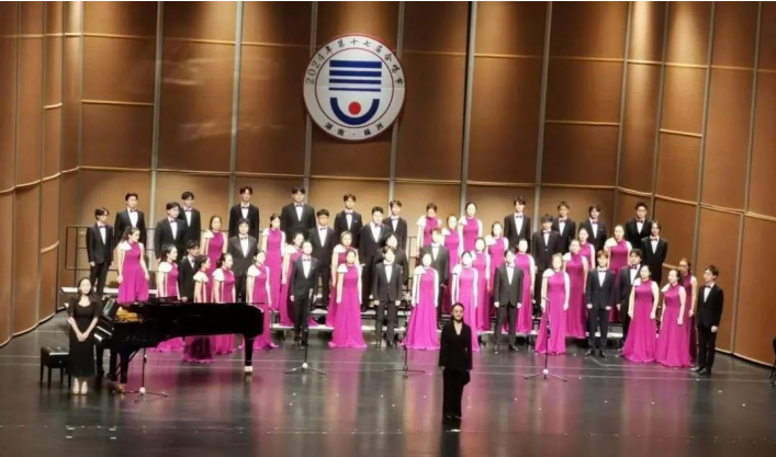 据悉,本次大赛由中国合唱协会主办,是我国合唱艺术领域具有权威性、导向性、示范性、严要求、高规格的合唱盛会,从1996年开始,至今成功举办了十七届,已成为中国合唱协会的重要音乐品牌之一。大赛以“唱响中国梦、讴歌新时代”为主题,共设置了童年组、青少年组、成人组、老年组等9个组别。来自全国123支优秀合唱团带来了许多经典的合唱作品。在此次合唱节上,leyu.乐鱼(集团)体育科技股份有限公司官网澄音合唱团带去了《绿衣》《舟中望晓》两首新作,队员们用和谐美妙的声音、饱满真挚的情感以及默契十足的配合,征服了评委和观众,最终获得金奖。澄音合唱团指导教师易松的作品《盘王大歌》还获得了优秀新作品奖。