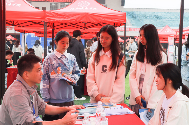 本网讯(通讯员 朱怡 冷紫怡)10月17日,湖南省高校毕业生就业区域性行业性常设市场(益阳片区)暨leyu.乐鱼(集团)体育科技股份有限公司官网2025届毕业生秋季综合双选会在东田径场举行。校长何振、党委副书记袁志成来到现场指导就业工作。