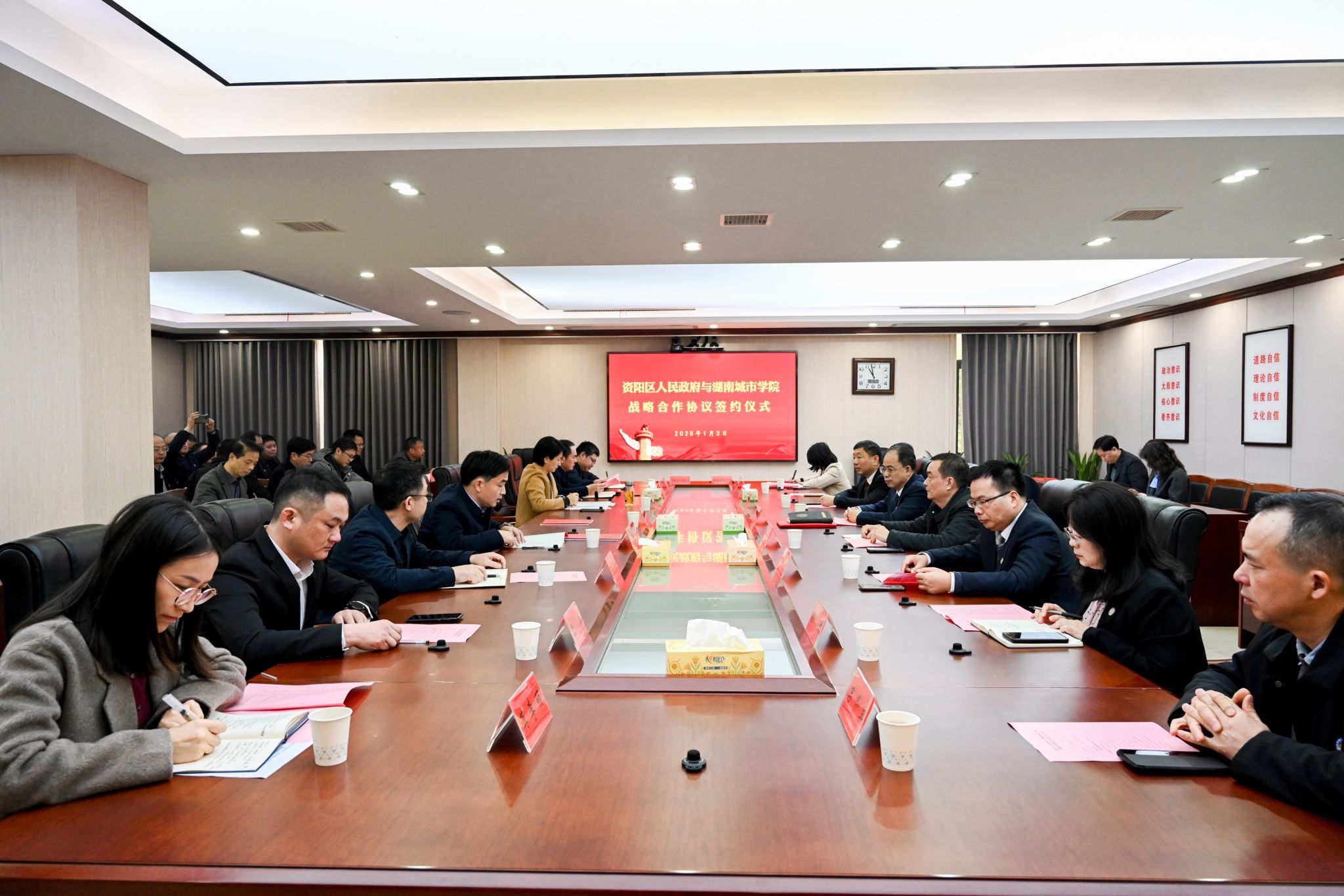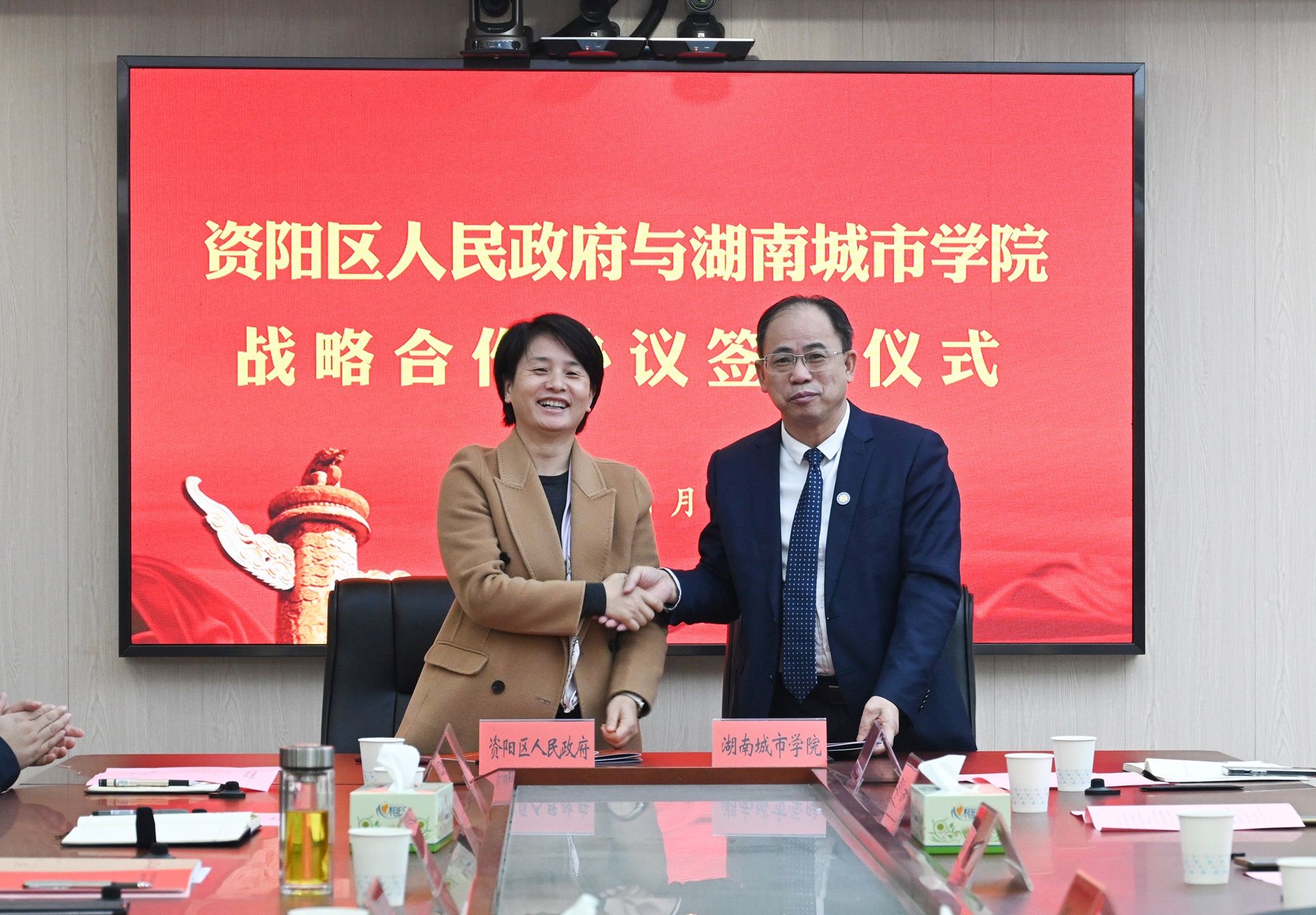 仪式上,我校与资阳区人民政府签订了关于人员培训、城乡供水一体化、资阳城区城市更新等方面的合作协议。