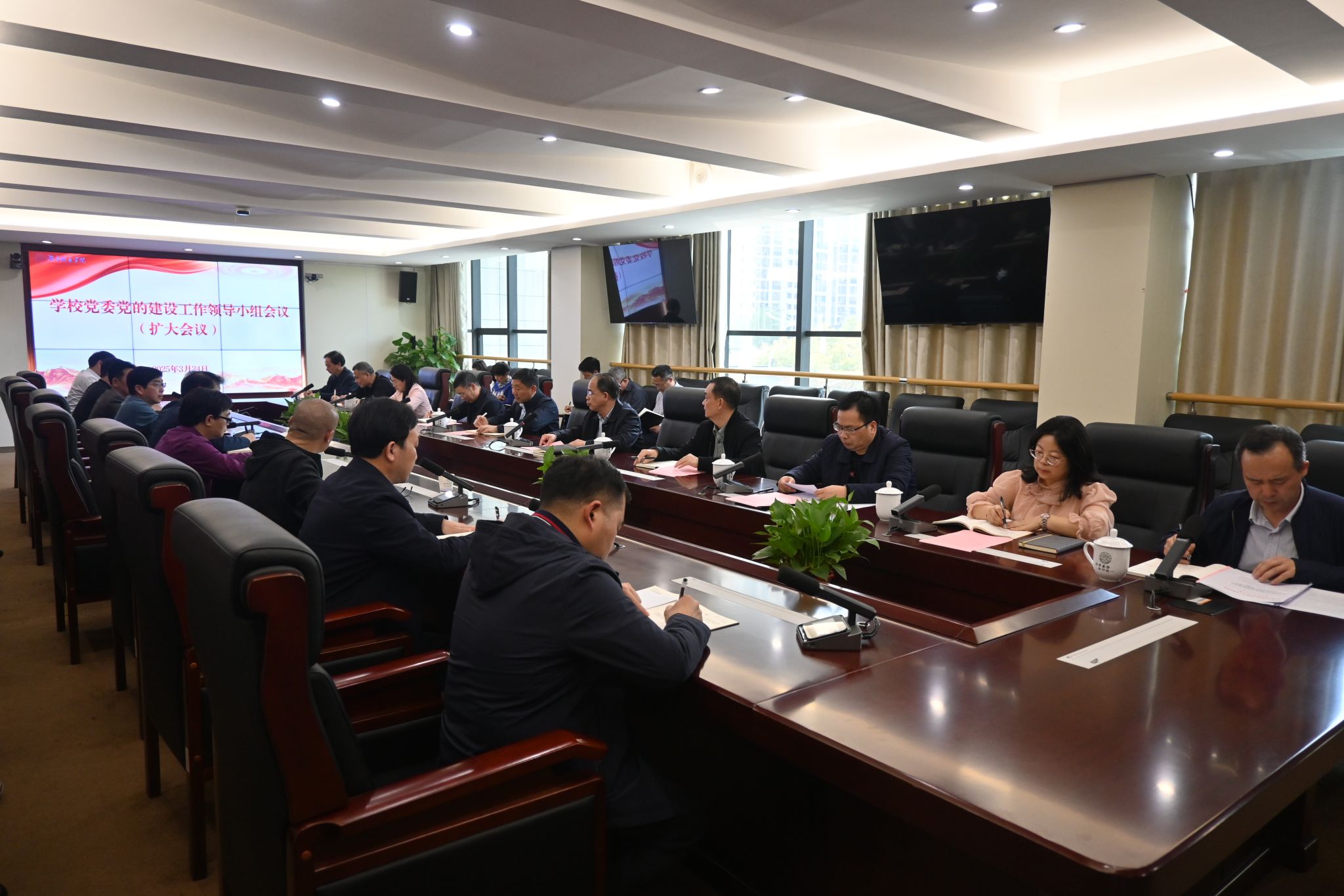 会议传达学习了中央党的建设工作领导小组会议和省委常委会(扩大会议)暨省委党的建设工作领导小组会议精神。会议审议并通过了我校学习教育《工作方案》。