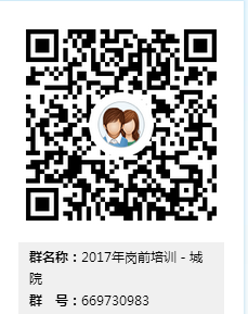 7.请参加培训人员加入“2017年岗前培训-城院”QQ群以方便联系,群号码:669730983。入群要求实名制。