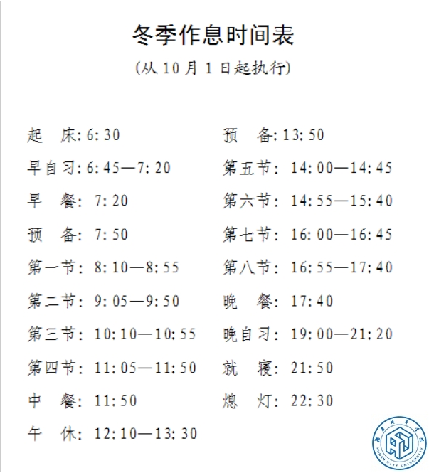 10月1日起,学校执行冬季作息时间和“错峰”上下课,见附件。