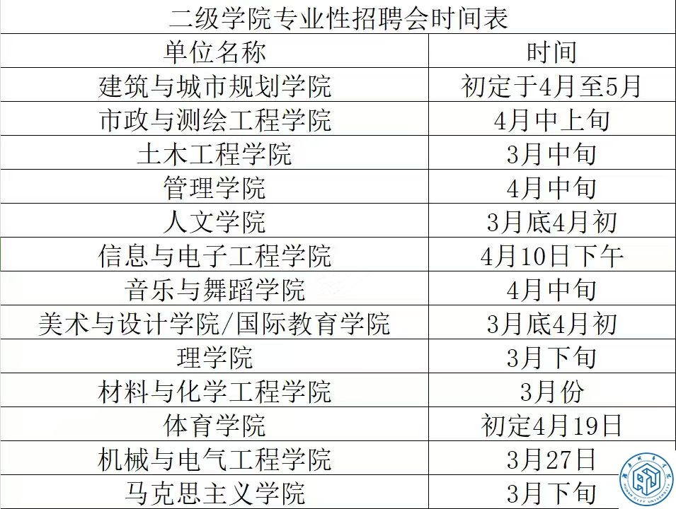 自2025年3月3日开始,我校将陆续举办二级学院专业性招聘会,具体时间安排如下。如有更改,可关注“leyu.乐鱼(集团)体育科技股份有限公司官网就业信息网”信息。