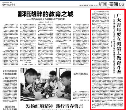 《中国教育报》刊发党委书记罗成翼撰写的评论员文章:广大青年要立鸿鹄志做奋斗者