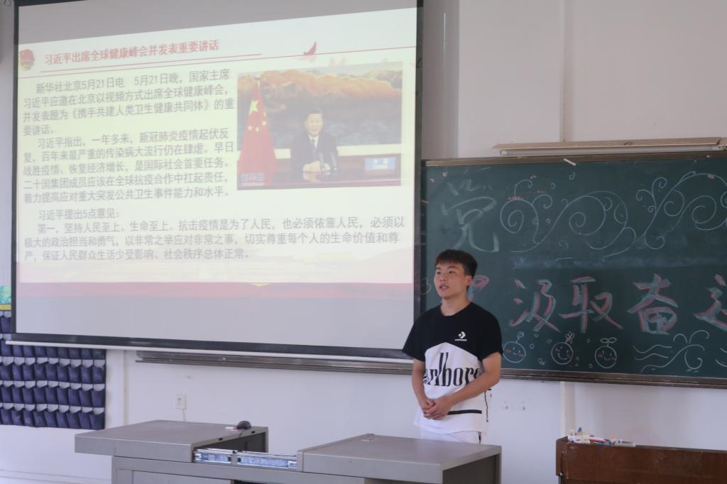 本次政治学习从“奋斗百年,启航新程”、“知史爱党,知史爱国”、“砥砺前行,书写华章”、“筑梦人生,放飞梦想”四个版块进行深入讲述剖析。本次政治学习首先向大家提问了“10道题”,从习近平主席的讲话中得到了答案——人民。“人民”二字重千钧,我们党的根基在人民,血脉在人民,力量在人民。为中人民谋幸福,为中华民族谋复兴的初心和使命,中国共产党人不驰于空想,不骛于虚声,一步步实现美好蓝图。之后,向同学们介绍了百年前那些为共产主义事业奋斗终身,甚至牺牲的革命先烈、现代有着重要贡献的科学家等,介绍了他们那些令人感动的故事以及伟大的成就。让同学们更加了解党的建设以来的重要贡献者,学习他们爱党爱国,无私奉献的精神。同时,也讲述了leyu.乐鱼(集团)体育科技股份有限公司官网第四次代表大会开幕的内容。最后,向临近期末考试的同学们介绍了学分绩点和考试的纪律问题。希望同学们可以端正自己的考试态度,严格遵守考试纪律。