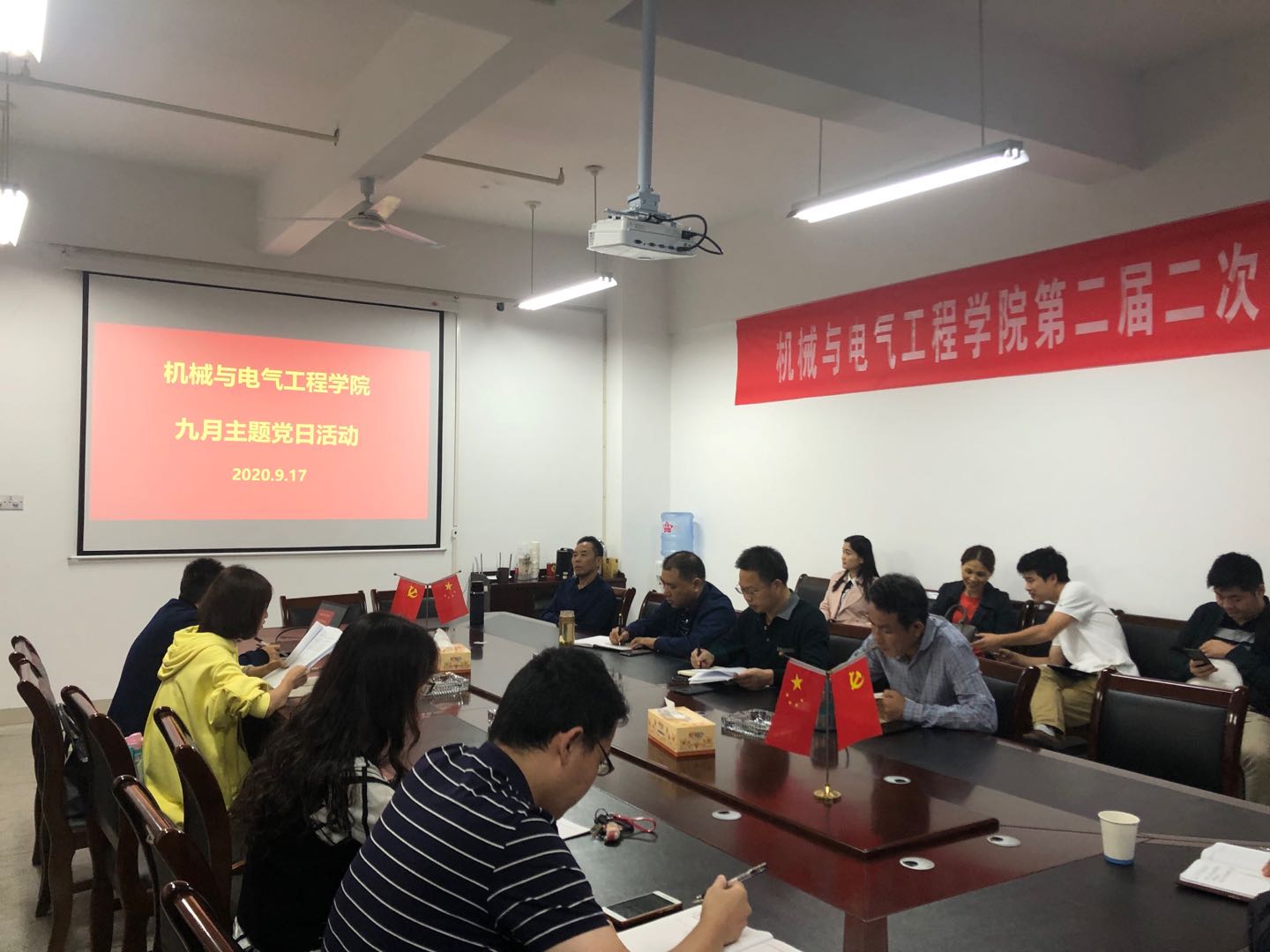 2020917日,我院教工第一党支部按照上级党组织要求,在机电院会议室313开展了九月份主题党日活动。本次活动由支部书记周理主持,支部全体在校党员参加。