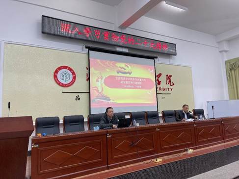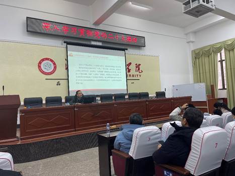 吕贤军紧扣党的二十大报告原文,围绕党的二十大的主题及主要成果、深刻认识新时代十年的伟大变革及其里程碑意义、不断开辟马克思主义中国化时代化新境界、牢牢把握新时代新征程中国共产党的使命任务、认真落实党的二十大提出的任务要求、用新的伟大奋斗创造新的伟业等方面,结合自身学习思考和学院发展实际,对党的二十大精神进行了深入浅出地阐述和全面系统地解读。