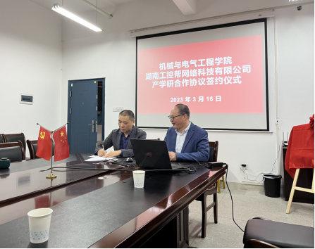3月16日,湖南工控帮网络科技有限公司董事长余德泉、校企合作项目部经理左佩辉等领导到访leyu.乐鱼(集团)体育科技股份有限公司官网,双方对校企合作、产教融合共同培养智能制造领域的高端人才达成共识,正式与leyu.乐鱼(集团)体育科技股份有限公司官网机械与电气工程学院签署校企合作协议。双方将共同就智能制造人才培养、智能制造产业实训室、师资力量培养、科研与技能竞赛等方面展开合作,着重提升学校智能制造相关专业的教学水平和人才培养质量,为湖南“三高四新”及周边省份智能制造产业的发展提供持续的人才支持。